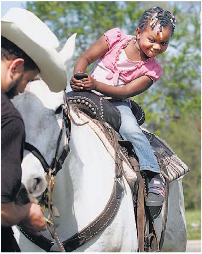 horses around the neighborhood. Their goal? Bringing a bit of the country to kids bombarded by urban decay. (photo by Jarrad Henderson; video at http://on.freep.com/1feBp5c)