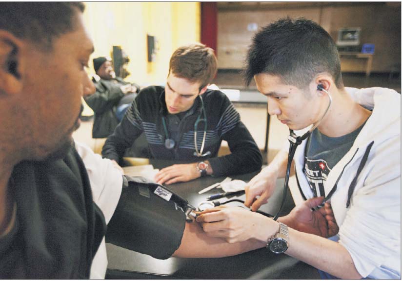 shelters and churches, helping people who have few resources or the means to access them. They are medical students, and what they do is called Street Medicine. (photo by Ryan Garza)